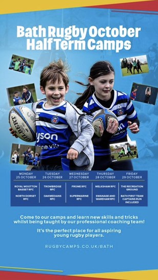 We are delighted to announce that we are hosting Bath Rugby for one of their popular Camps on Monday 25th October.