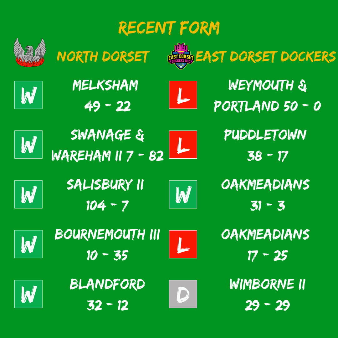 Dorset and Wilts 1 South Champions North Dorset come into this game as firm favourites after they are currently on a 16-match unbeaten run, which goes back to 30th October 2021. East Dorset Dockers however, come into the game on a rocky bit of form, with only one victory in their last 5 matches, that coming in the cup semi-final against Oakmeadians, who they lost to in the league the previous week. Their suggests their cup form is superior to their league form which should leave North on full alert.