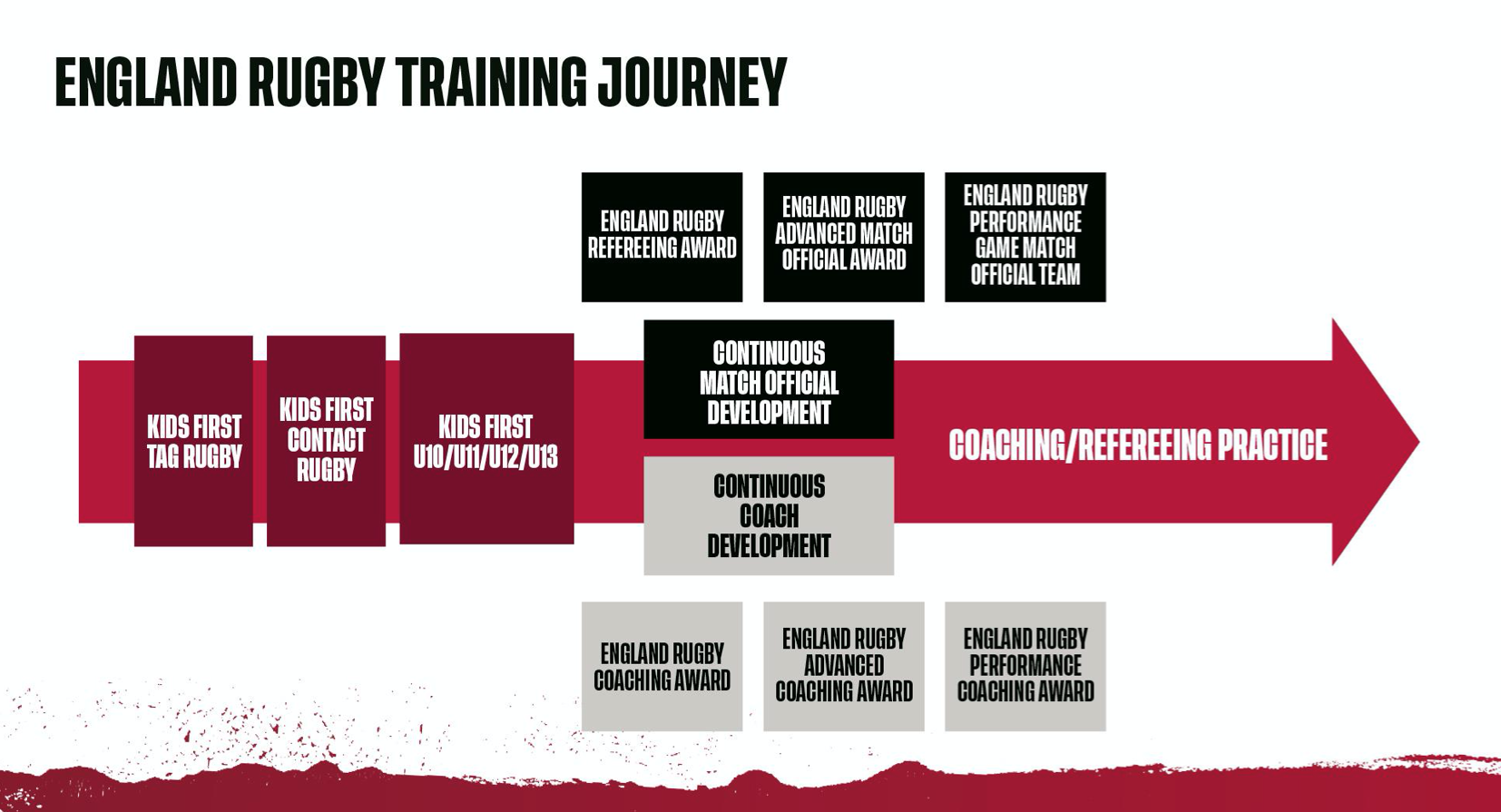 You will see on the graphic below is that we will then be moving towards the England Rugby Coaching Award (ERCA) and England Rugby Refereeing Award (ERRA) for U14s and above.